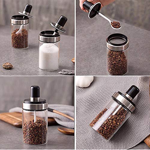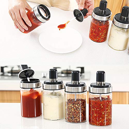Rain House - Rain House Glass Spice Jars with Serving Spoon, Mason Storage Canister Clear Condiment Food Bottle with Stainless Steel Lid, Salt Sugar ketchup Canning Jar for Home Kitchen 8.5OZ (250ml)