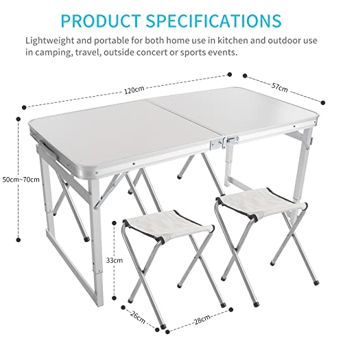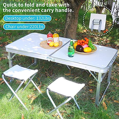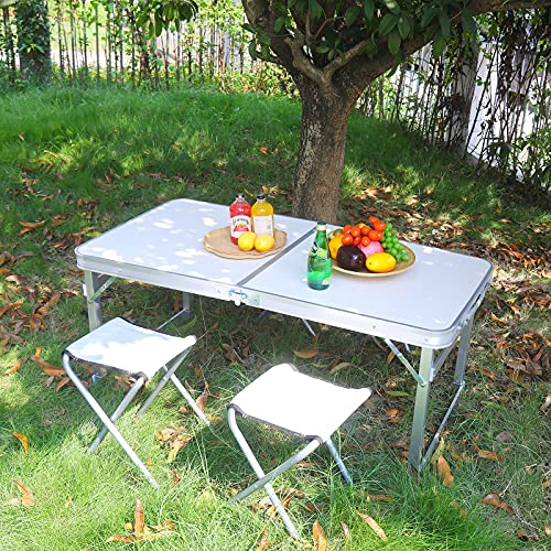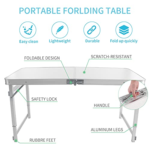 Rainberg - رينبيرج طاولة حديقة 4 قدم و6 قدم، طاولة قابلة للطي، طاولة نزهة، طاولة تخييم، طاولة عشاء خارجية، طاولة شواء. (طاولة مع كراسي، 4 اقدام)، متعدد