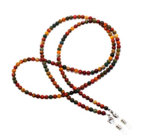 rainbow safety - Glasses Cord Holder Natural Stone Agate Amethyst Tiger's Eye Amazonite Quarz Lapis Lazuli Malachite RC, Red Creek Jasper, One size