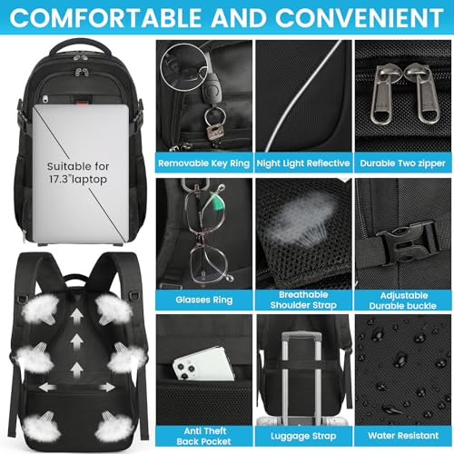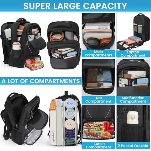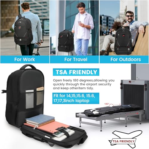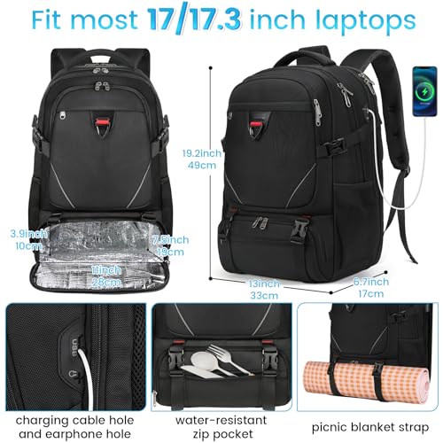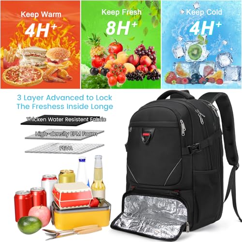 RAINSMORE - RAINSMORE Laptop Backpack 50L with Insulated Compartment Travel Work Backpack 17.3 Inch Water Resistant Large Business Computer Rucksack College School Backpack for Men Women Black
