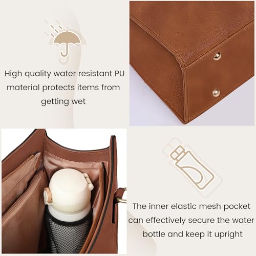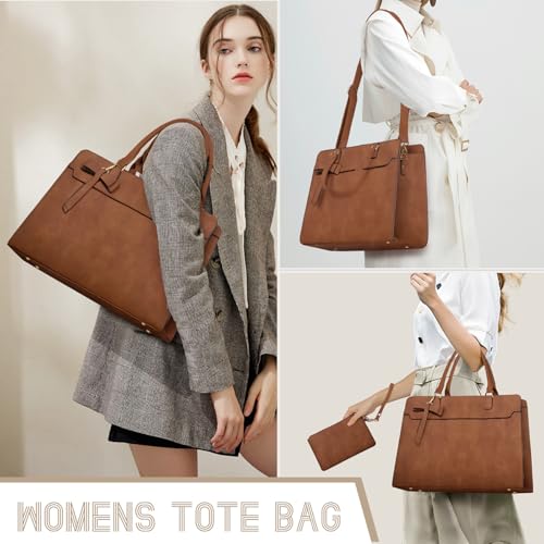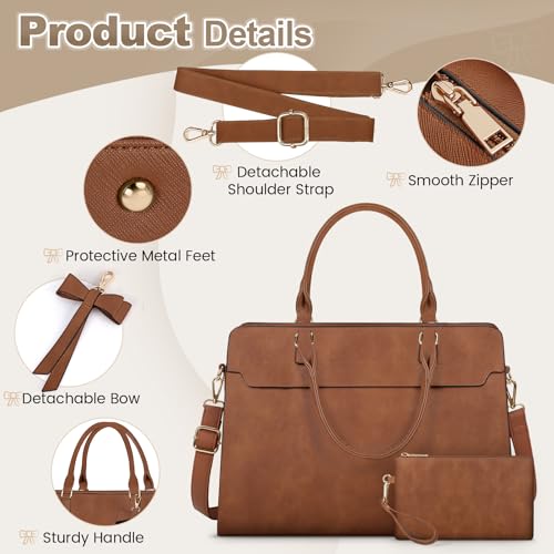 RAINSMORE - شنطة لاب توب للنساء من راينزمور، شنطة كبيرة توت من جلد صناعي للاب توب بشاشة مقاس 15.6 بوصة، شنطة يد للاب توب مع شنطة كلاتش مقاومة للماء للعمل والمكتب والمدرسة