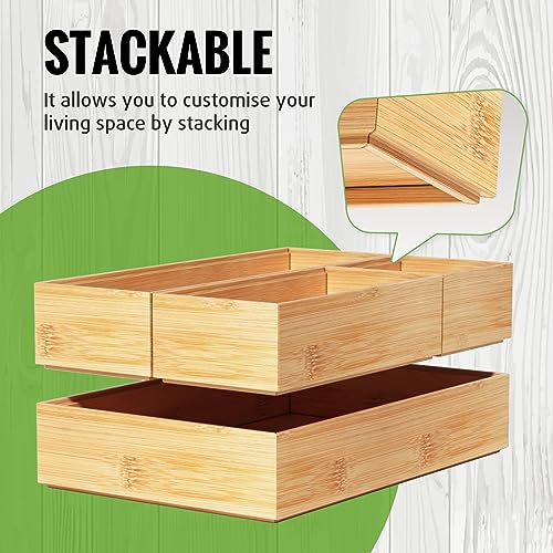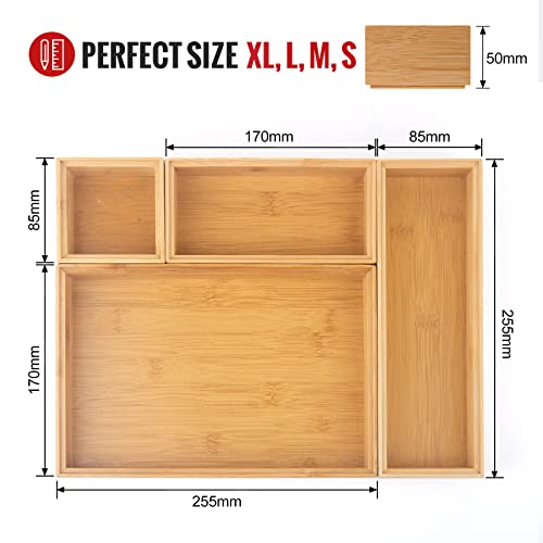 Rainsworth - Rainsworth Stackable Bamboo Drawer Organizer - Storage Box XL, L, M, S - Set of 4 Kitchen Cabinet Desk Bathroom Tricks - Dividers Separators Drawer Containers