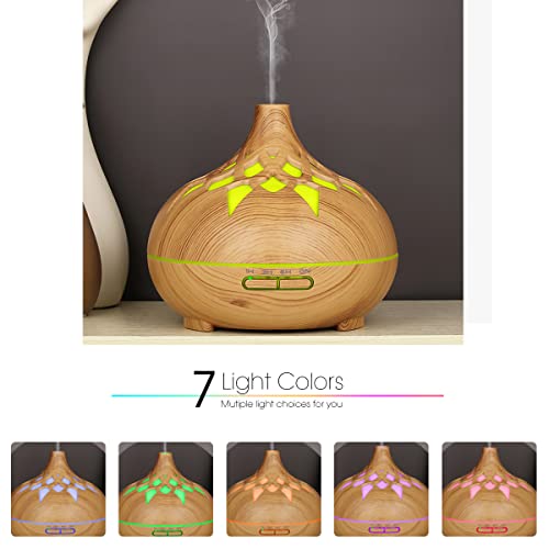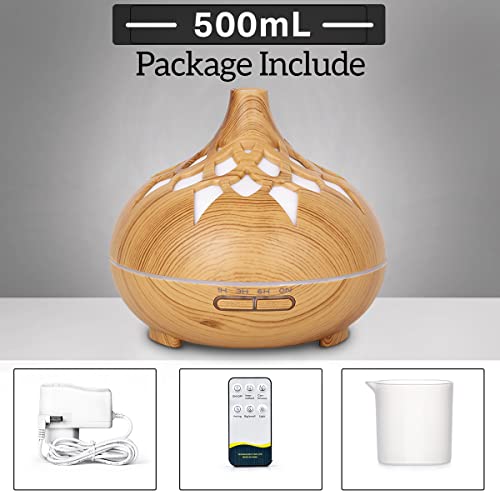 - Rakoon Essential Oil Diffusers 500ML Aroma Diffuser for Essential Oils Home Office Large Room Aromatherapy Diffuser Ultrasonic Cool Mist Humidifier with 15 Light Modes 4 Timer Auto-Off Wood Grain