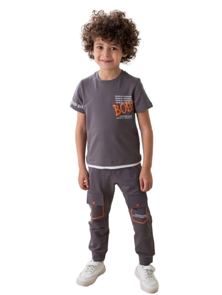 Rama - Rama Boys’ Printed Pajama Set T-Shirt And Shorts-4166-dark gray