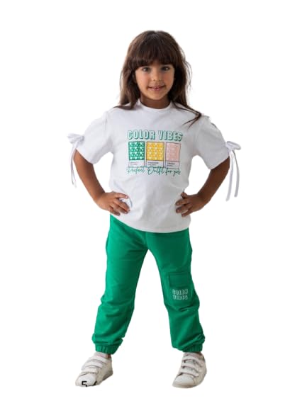 Rama - Rama Girls’ Printed Pajama Set T-Shirt And Pants-1165-white