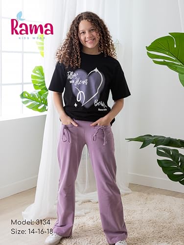 Rama - Rama Girls’ Printed Pajama Set T-Shirt And Pants-3134-black