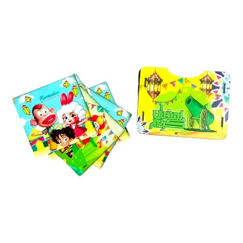 - تصميم رمضاني احتفالي: مجموعة من 6 كوسترات خشبية مزينة برسومات ملونة لشخصيات كرتونية مرحة وفوانيس ومدافع رمضان تضفي أجواء البهجة والاحتفال على منزلك