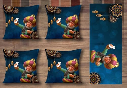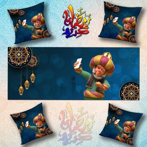Generic - Ramadan Cushion & Runner Set 5 Pieces Assorted Printed Ramadan Designs – 4 Cushion 40x40cm + Runner 145x55cm – Double Sided Printing – Suitable for Home Decor (Fananes)