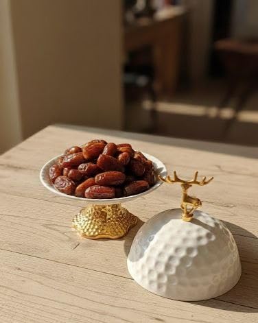 - LUXURIOUS DESIGN: Passon with an elegant white dome cover with decorative gold base and a crescent top embellishment adds a sophisticated touch to the table of Ramadan