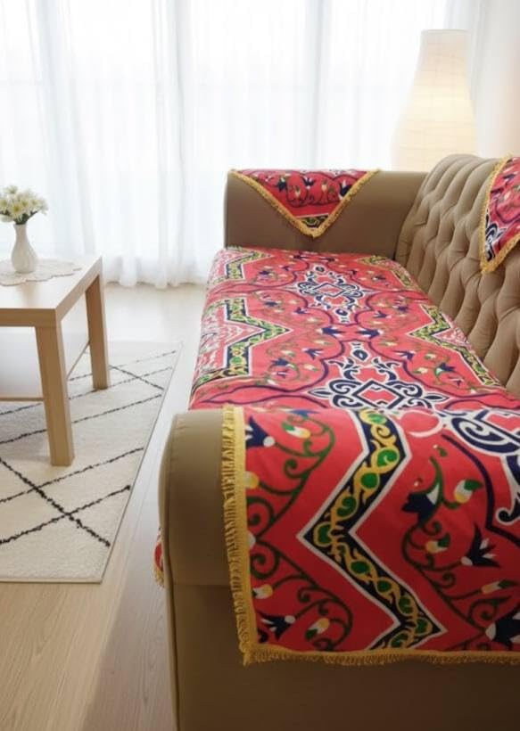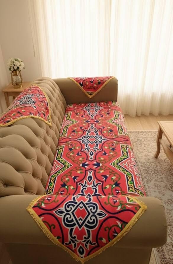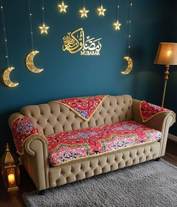 Generic - طقم أنتريه ديكور من القماش الرمضاني يتكون من قطعتين كنبة وقطعتين فوتيه مع 6 مناديل مزخرفة للأجواء الاحتفالية O