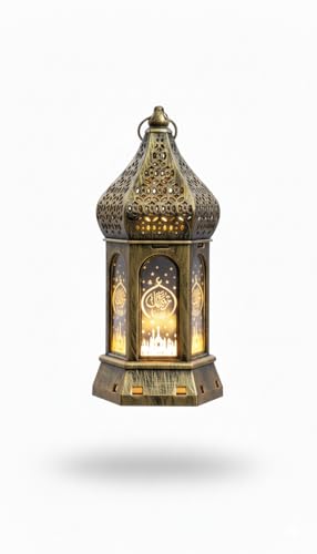 Generic - Ramadan Decor Lantern - LED Warm Lighting, Classic Ramadan Lantern for Home and Table, Premium Ramadan Gifts, Ramadan Decorations Indoor and Outdoor - Bronze