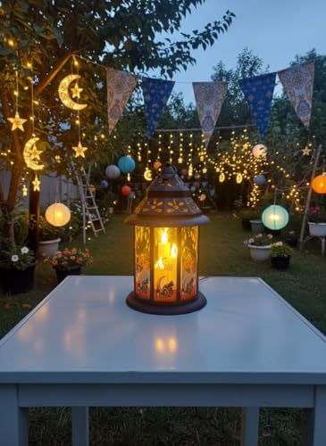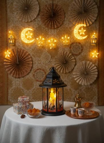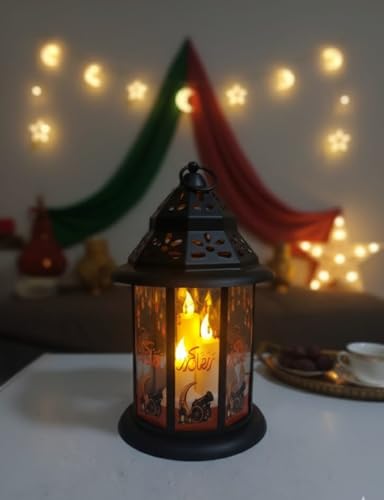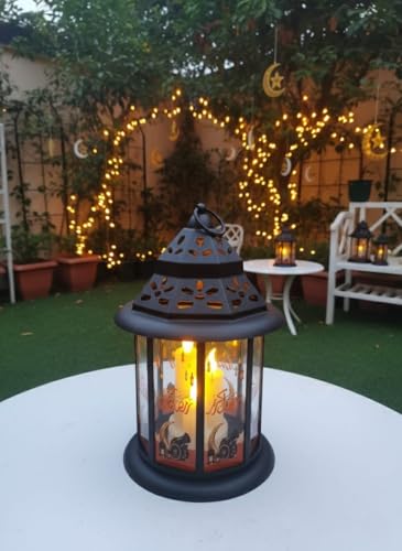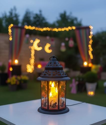 - إضاءة شمعية دافئة يحتوي الفانوس من الداخل على شموع LED تعطي إضاءة صفراء دافئة تحاكي ضوء الشموع الحقيقي، مما يوفر أجواءً هادئة وآمنة تماماً (بدون نار أو دخان)