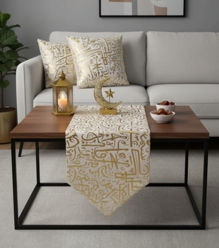 Generic - Ramadan Decor Set 3 Piece – Table Runner + 2 Cushions Arabic Geometric Elegant Design – Home Furnishings for Ramadan Atmosphere (Gold)