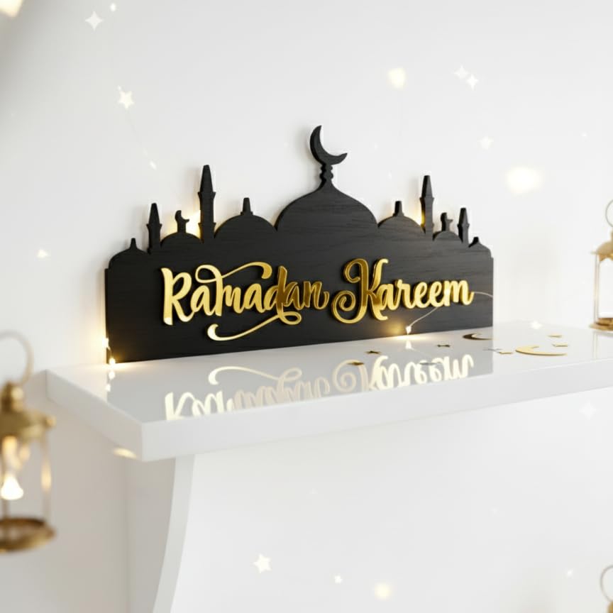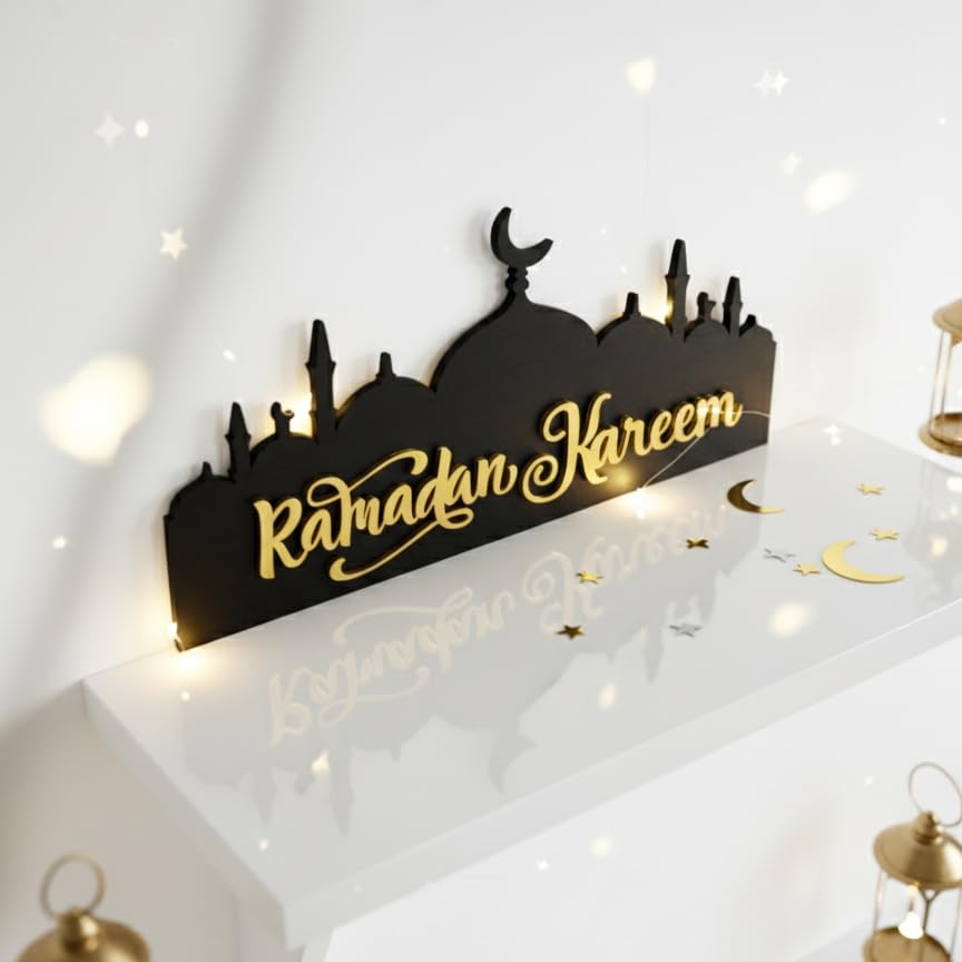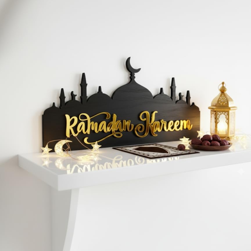 Generic - Ramadan Decor Wooden Shelf Decor Black in Gold Thickness 14mm for Shelf Decoration Adds Modern and Elegant Ramadan Touch High Quality Material and Fine Finish Makes It a Perfect Ramadan Gift