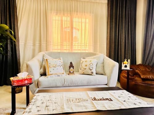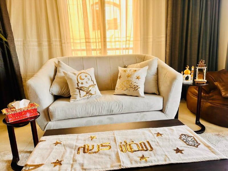 - يتميز بتطريز احترافي وعصري بعبارة "رمضان كريم"، مما يجعله قطعة الديكور الأكثر طلباً لإضفاء لمسة احتفالية وأنيقة على منزلك في شهر رمضان.