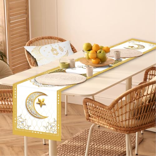 - تصميم أنيق وفاخر: يتميز طقم مفرش الطاولة وغطاء الوسادة هذا المكون من 5 قطع بمفرش طاولة جميل من الكتان الأبيض (183 × 33 سم) مع لمسات ذهبية اللون مع أربعة أغطية وسائد مقاس 45 × 45 سم. تضفي الحروف والأنماط الذهبية مظهرًا أنيقًا وبسيطًا، مما يجعلها مثالية لخلق أجواء فاخرة خلال شهر رمضان المبارك.