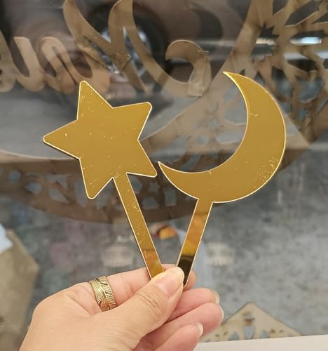 Generic - Ramadan Dessert Forks with Wooden Handle – Acrylic Crescent Moon, Star, and Lantern Decorations, Perfect for Decorating Sweets and Festive Table Settings (One pack)