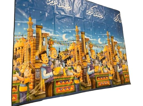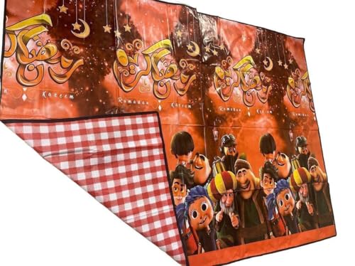 Generic - مفرش طاولة طعام رمضان - مفرش طاولة طعام بطباعة رمضان، طباعة ثلاثية الابعاد، يمكن تعليقه على الحائط، تصميمات رمضان تتضمن باسانت ودياستي وفنانيس