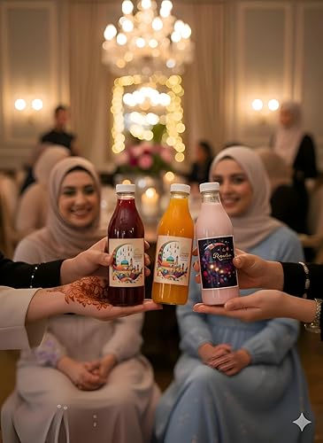 - تتميز مجموعة زجاجات العصير الأنيقة هذه بثلاث قطع فريدة الشكل، كل منها مصمم كزينة فنية مستوحاة من شهر رمضان ترفع من إعداد طاولتك وتثير إعجاب الضيوف أثناء التجمعات الاحتفالية.