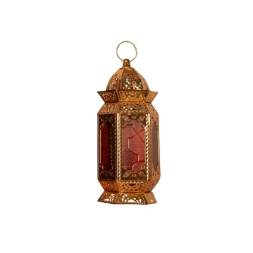 LC - فانوس رمضان زجاجي معدني مقاس 12.5 بوصة، بتصميم اسلامي ذهبي - تصميم فريد من نوعه للديكور