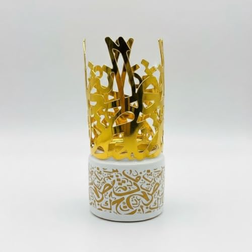 Generic - مبخرة رمضان حروف عصرية بتصميم عربي فاخر، سيراميك ومعدن ذهبي، ارتفاع 15 سم، أسود وذهبي (أبيض, 15cm)