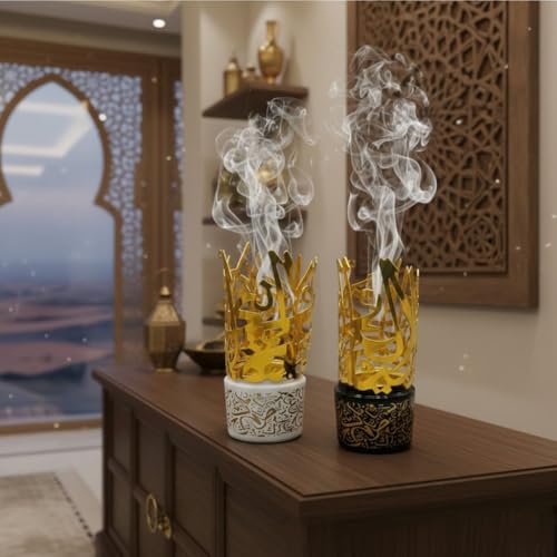 - الأبعاد: الارتفاع 15 سم (حجم مثالي للمكتب، الطاولات الجانبية، والرفوف). الألوان المتاحة: قاعدة بيضاء مع نقوش ذهبية. قاعدة سوداء مع نقوش ذهبية. الاستخدام: مناسبة لجميع أنواع البخور (العود، المعمول، والمبسوس).