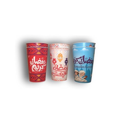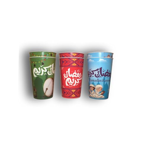 Generic - طقم اكواب عصير بلاستيكية بتصميم رمضان كريم، جودة ممتازة، تصميمات اسلامية متنوعة، أحمر وأزرق وأخضر، عبوة من 6 قطع
