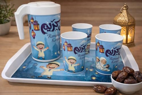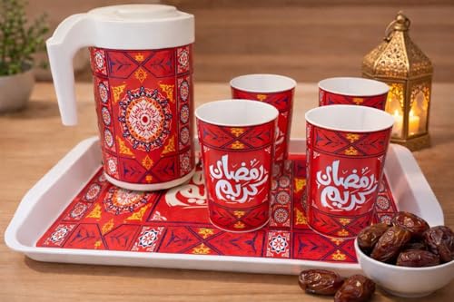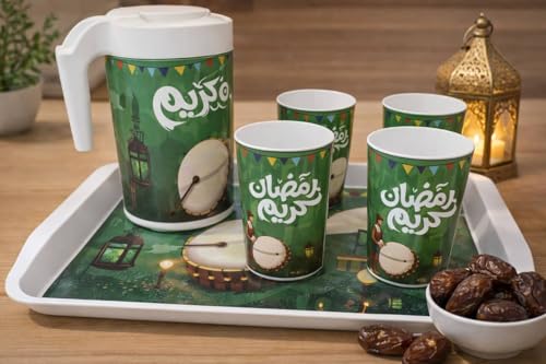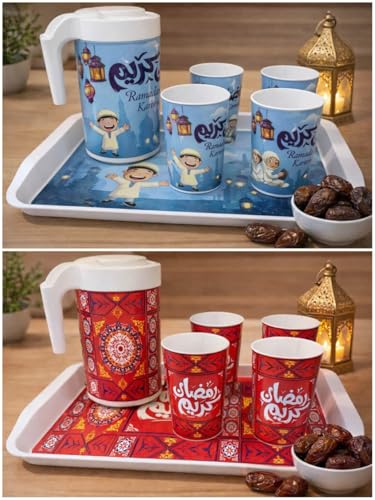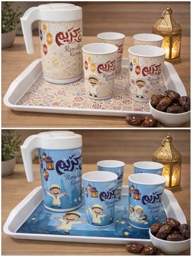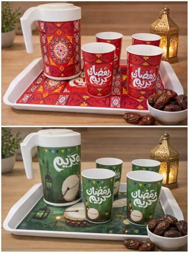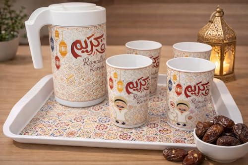 - Complete Ramadan Serving Set: Includes 1 tray, 1 pitcher, and 4 cups, providing a coordinated and practical solution for serving drinks during Ramadan Iftar and Suhoor gatherings at home or office.