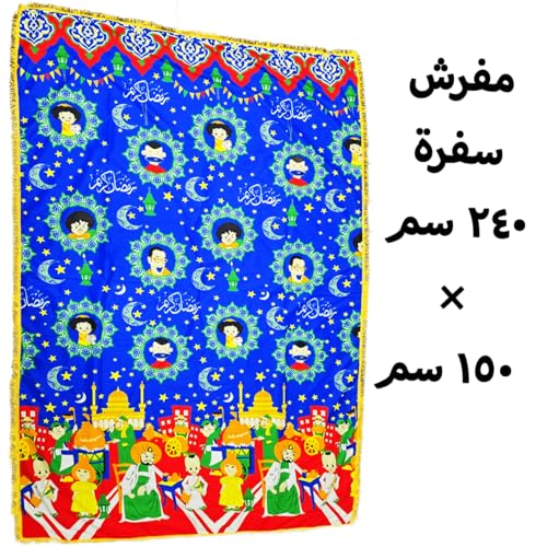 Generic - Ramadan Khayameya Cotton Tablecloth with Yellow Decoration 2.4 * 1.5 Meter Rectangular + Tablecloth 50 * 50 for Small Tabeze Ramadan Characters (Blue)