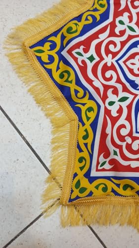 Generic - Ramadan Khayamiya Star Table Topper 85x95 cm – Decorative Egyptian Tent Fabric Table Cover with Yellow Fringe – Festive Islamic Dining Table Decor for Iftar, Suhoor & Home Display