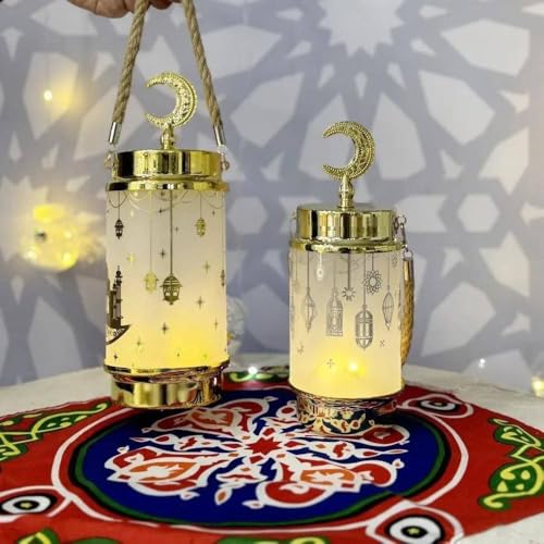 - Unique Islamic design: Ramadan lantern embossed with traditional lanterns and crescent patterns in a luxurious gold finish to create a festive spiritual atmosphere