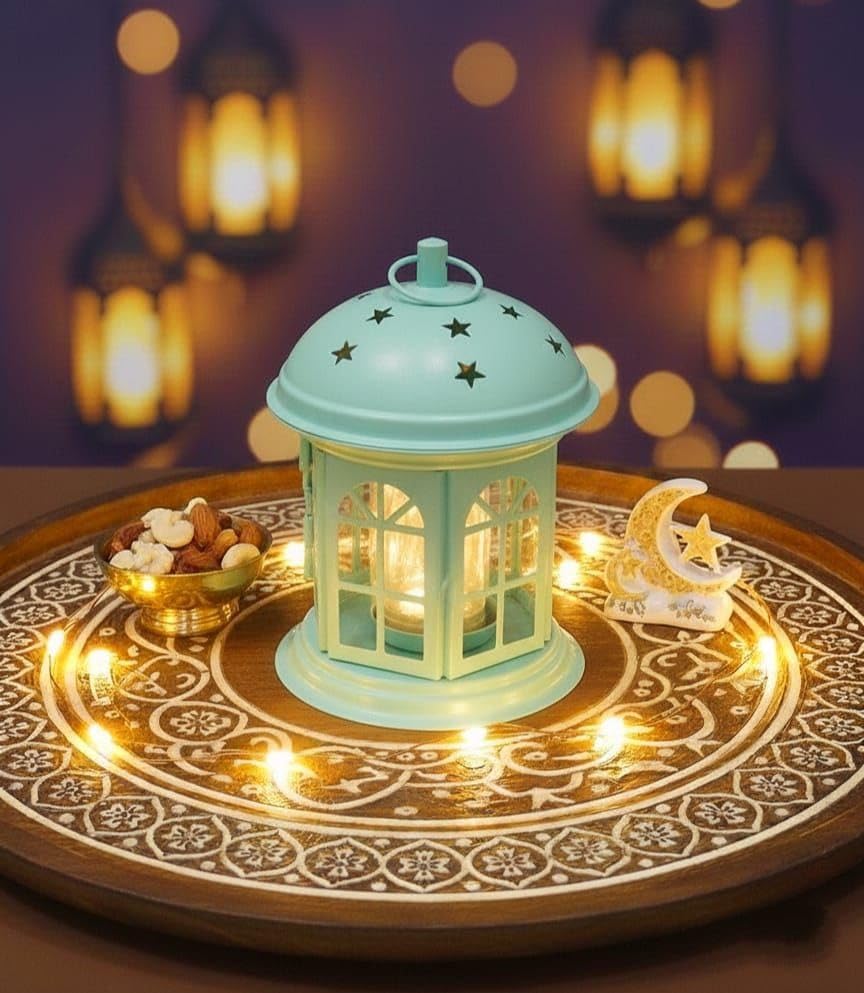 Generic - Ramadan Lantern Home Decor Ali Quality Unique Design Mint Green 15cm with Candle Gift for Home Patio Festival