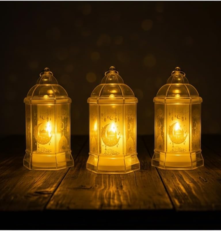 Generic - فانوس رمضان لديكور المنزل وحفلات العيد ورمضان بتصميم إسلامي، أضواء لون ذهبي فى ابيض مع شمعة هدايا للأطفال للمنزل والحفلات حمات عاليه الجوده 25 سم