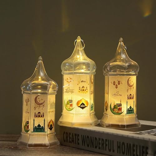- تصميم رمضان مميز: مصنوع من البلاستيك المتين، يتميز كل فانوس بجوانب شفافة مزينة بأنماط رمضان ذهبية؛ تشمل عناصر التصميم الأقمار والقلاع والمنارات وأشكال الفوانيس، مما يخلق مظهرًا رائعًا يلفت الأنظار على الفور؛ اغمر رمضان الخاص بك بالبهجة والحيوية من خلال هذه الفوانيس المصممة بشكل جميل