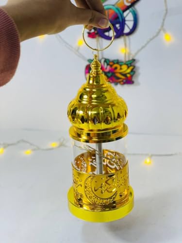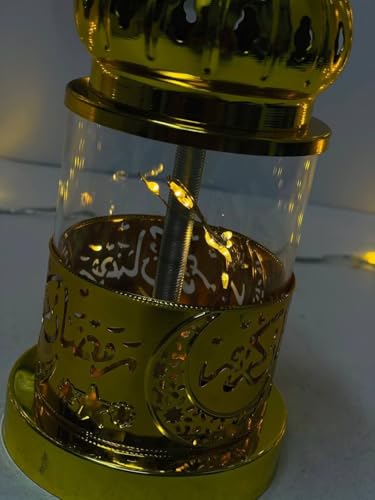 Generic - Ramadan Lantern LED Gold Islamic Decoration Metal Eid Mubarak Decoration Lighting Traditional Design with Arabic Inscriptions Size 25