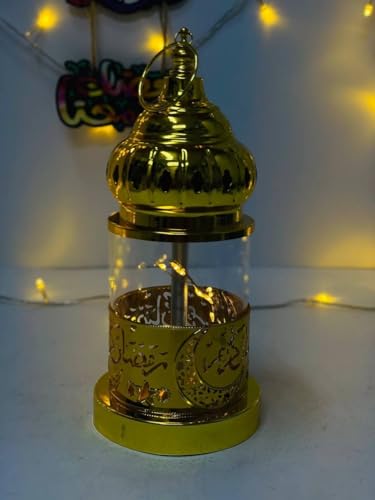 - Fashion Traditional Design: Classic design Ramadan lantern with decorative gold dome and metal base decorated with Islamic engraving and Ramadan phrases