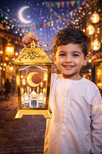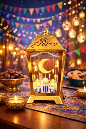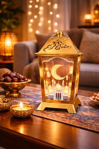 Generic - فانوس رمضان مضيء وموسيقى | إضاءة LED دافئة مع مؤثرات صوتية | ديكور رمضاني أنيق للمنازل والهدايا