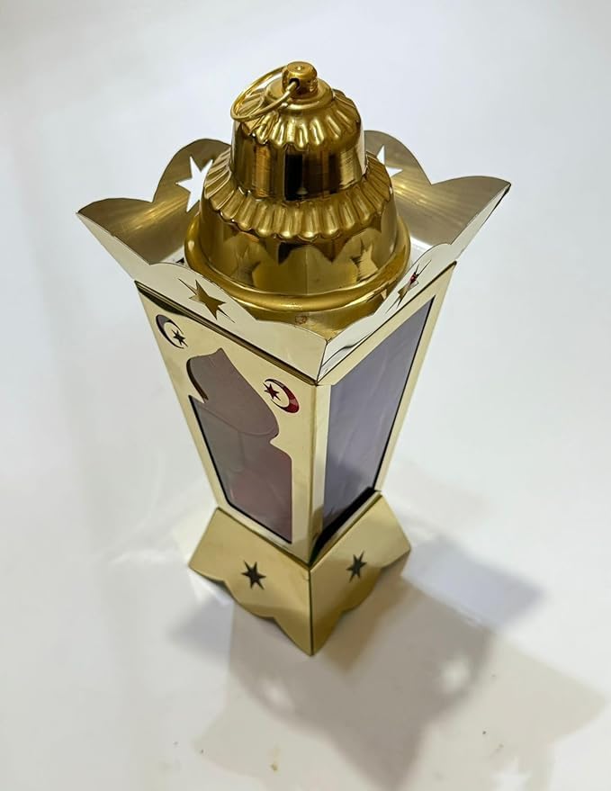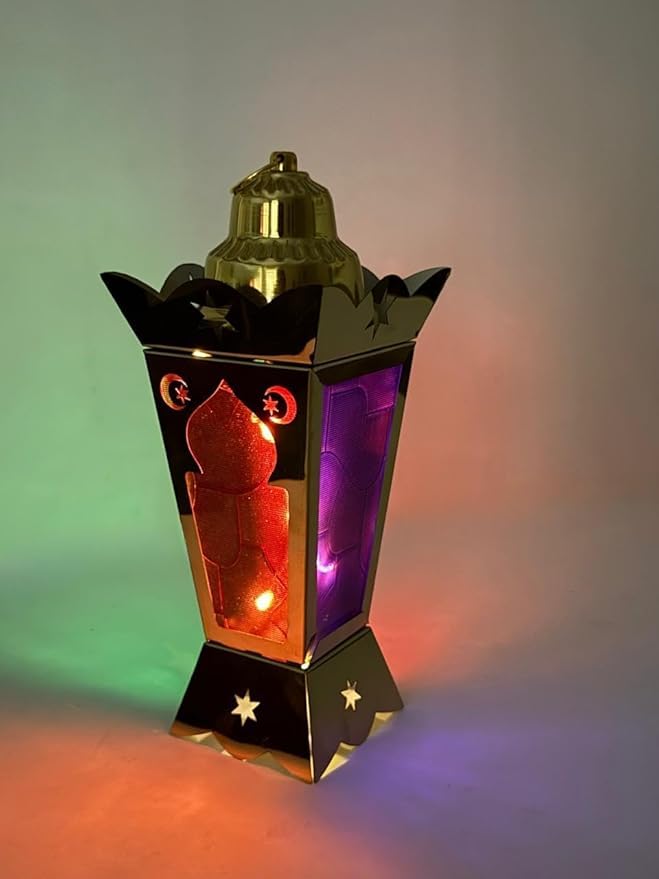 Generic - Ramadan Lantern Metal Elegant Gold Color Colorful Glass and Changing Lighting 35cm Moon Star