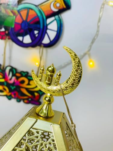 - Unique Design: Ramadan metal lantern with unique geometric design with delicate Islamic engraving and gold crescent on top