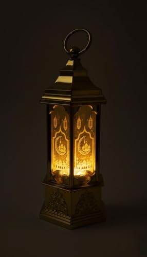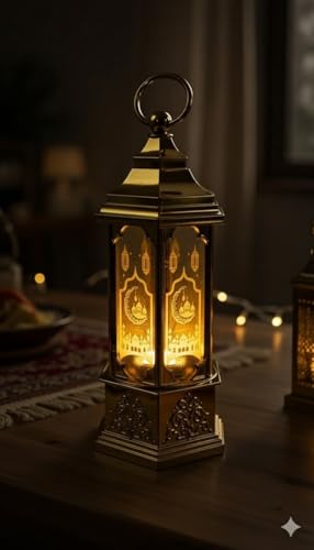 - Authentic Ramadan Design: A traditional lantern with luxurious Islamic engraving including the crescent and mosquid on transparent glass plates, creating a warm spiritual atmosphere perfect for the blessed month of Ramadan and religious occasions