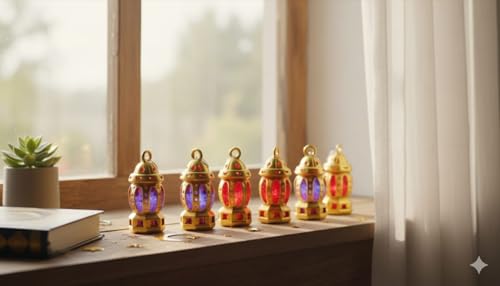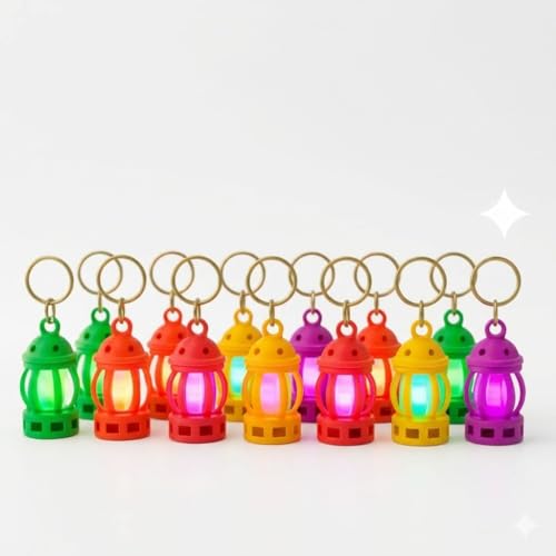 Generic - Ramadan Lantern Multi Color Luminous Medallion LED Lantern Key Ring Set of 12 Pieces Multi Shapes and Colors (3)