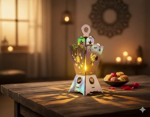 Generic - فانوس رمضان متعدد الاشكال والالوان (فانوس خشب 28 سم صوة ضوء فضي))