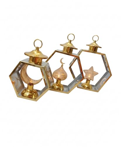 - COMPLETE SET: Includes 3 pieces of lanterns in different sizes with iconic Islamic symbols including crescent mosque and star