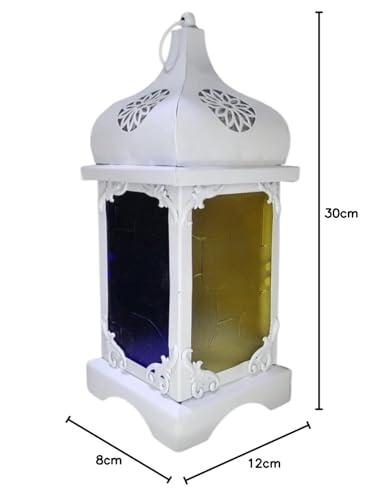 Generic - فانوس رمضان ابيض و زجاج ملون 30 سم
