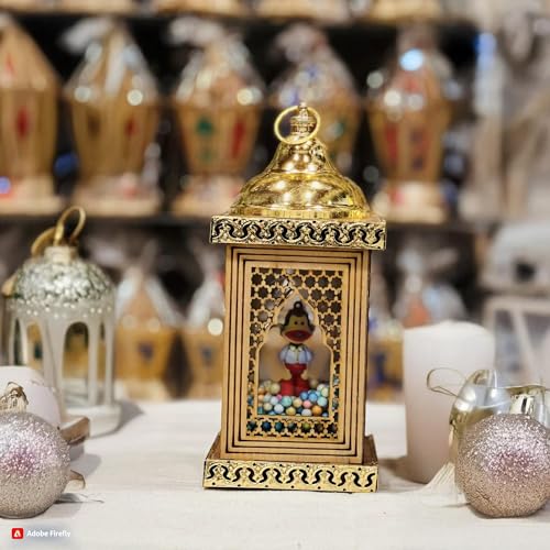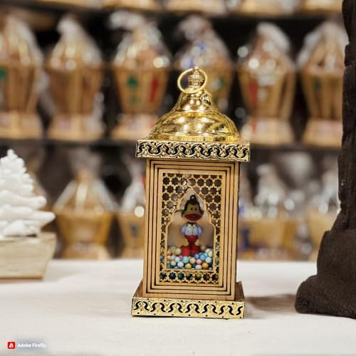 Generic - Ramadan Lantern with Figure, Decorative Wood with Base and Gold Metal Dome