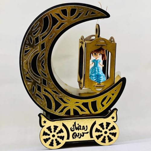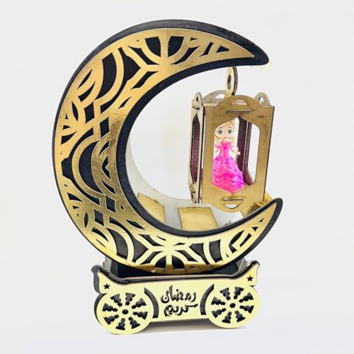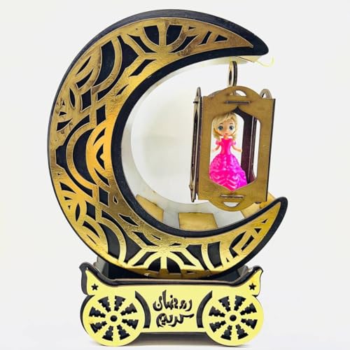 Generic - فانوس رمضان بتصميم مميز من الخشب والبلاستيك مزود بمؤثرات صوتية وضوئية وألوان زاهية لديكور احتفالي AM