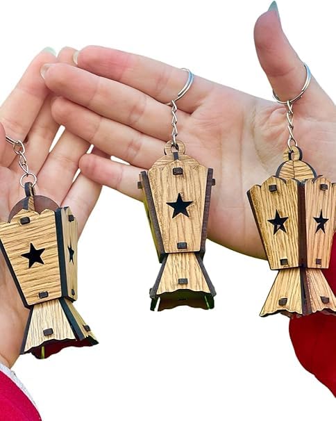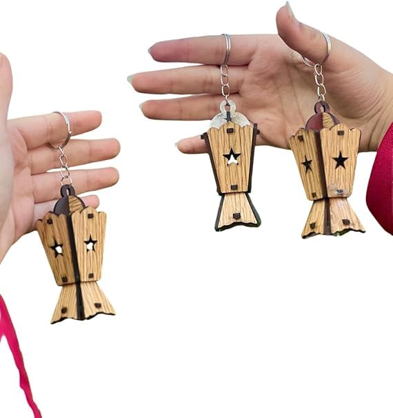 Generic - Ramadan Lantern Wooden Keychain Set, 6 Pieces, Laser Engraved Wood, Star Design, Holiday Decorative Gift, Metal Key Ring Included