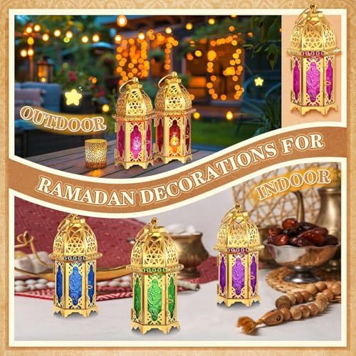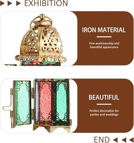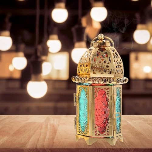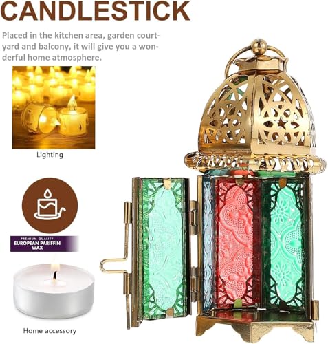 - AUTHENTIC MOROCCAN DESIGN: Exquisite gold-finished lantern featuring traditional 6-door construction with beautiful stained glass panels that create enchanting light patterns