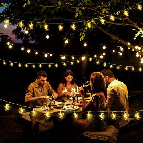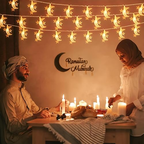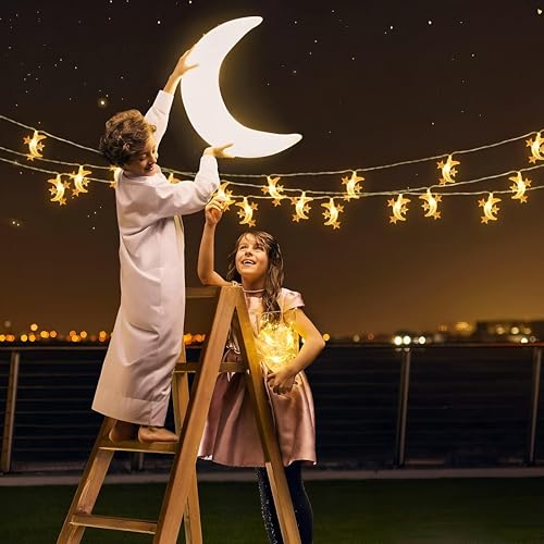 - أضواء رمضان الفريدة - قم بتحويل مساحتك بأضوائنا الزخرفية المذهلة بطول 3 أمتار والتي تحتوي على 40 مصباح LED على شكل نجوم وأقمار، وهي مثالية لخلق جو احتفالي خلال شهر رمضان.