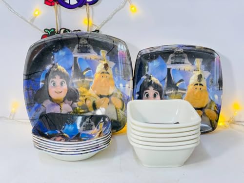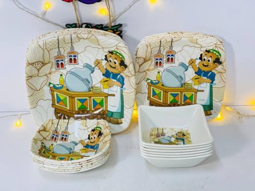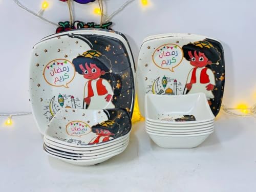 Generic - Ramadan Melamine Plates Set 24 Pieces, Ramadan Kareem Design with Characters and Decorations, White with Colorful Graphics for Ramadan Atmosphere